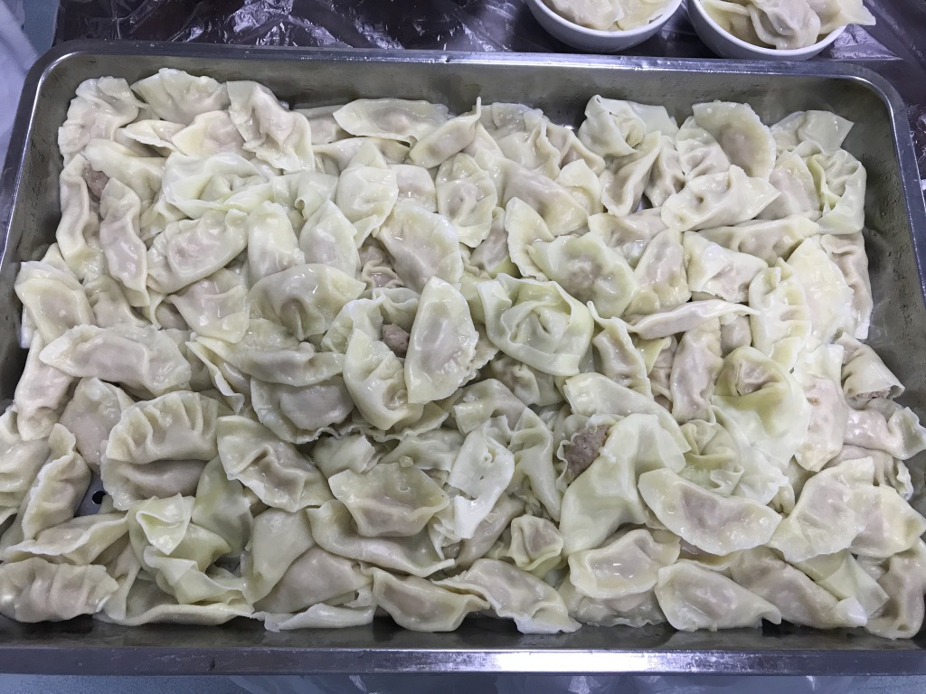 饺子出锅啦,还冒着热气儿呢······