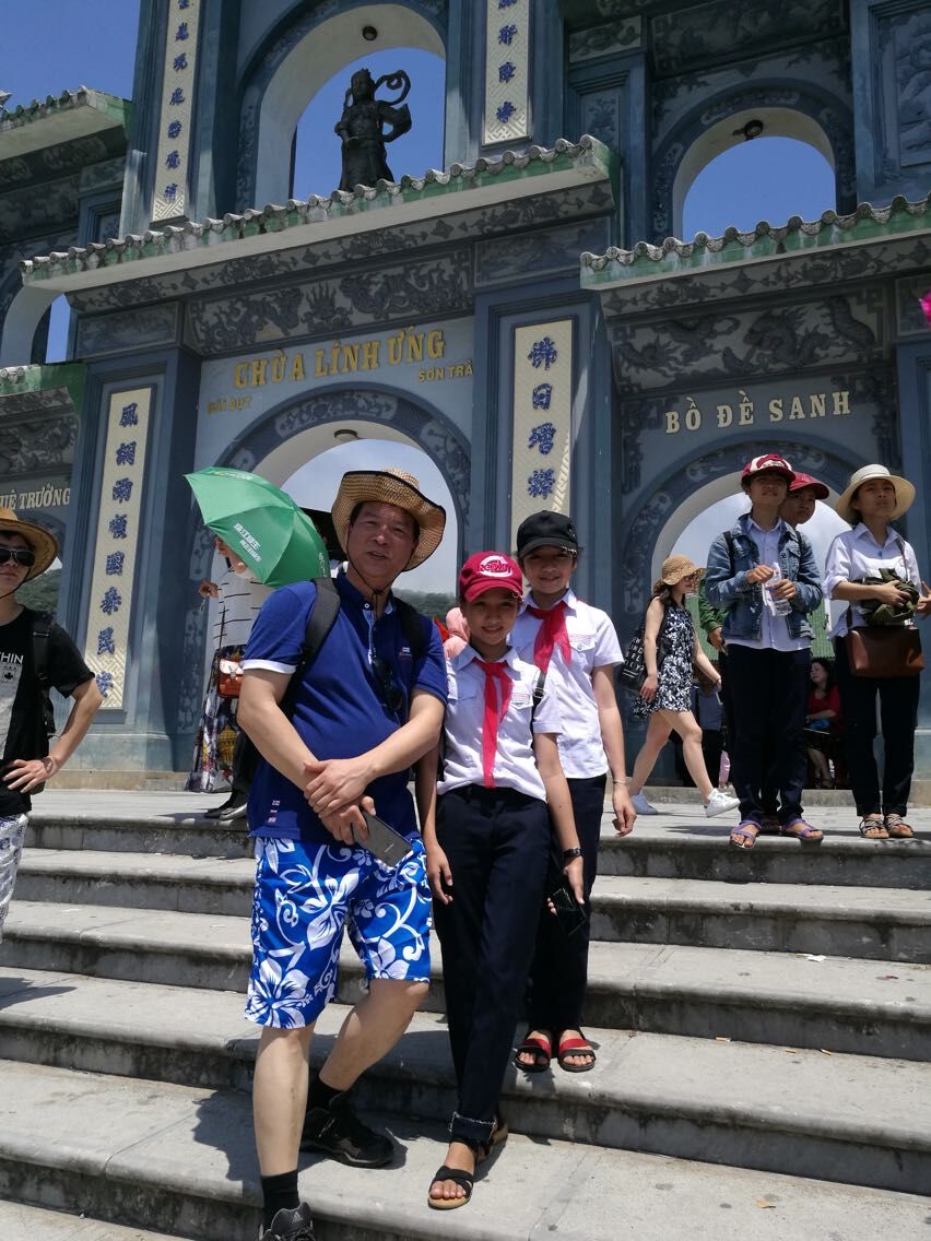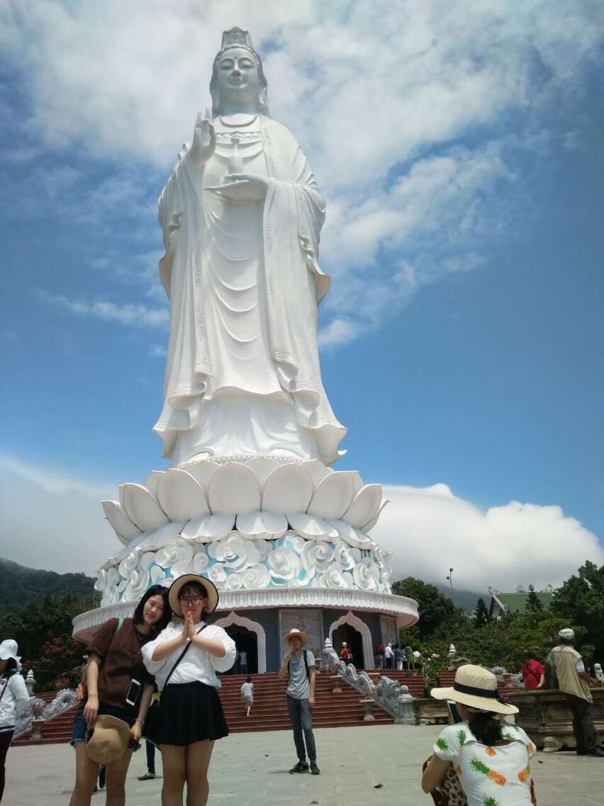 第一天大家一起前往岘港著名的山茶半岛。山茶半岛海拔696米,是俯瞰海景和岘港市容的最佳位置。岛上充满了浓郁的宗教文化,矗立着高达68米的望海观音像,是东南亚最大的。山上有一座寺院叫“云应寺”这个寺院是政府修建的,是汉庙。小伙伴们纷纷在上山游玩合影留念。