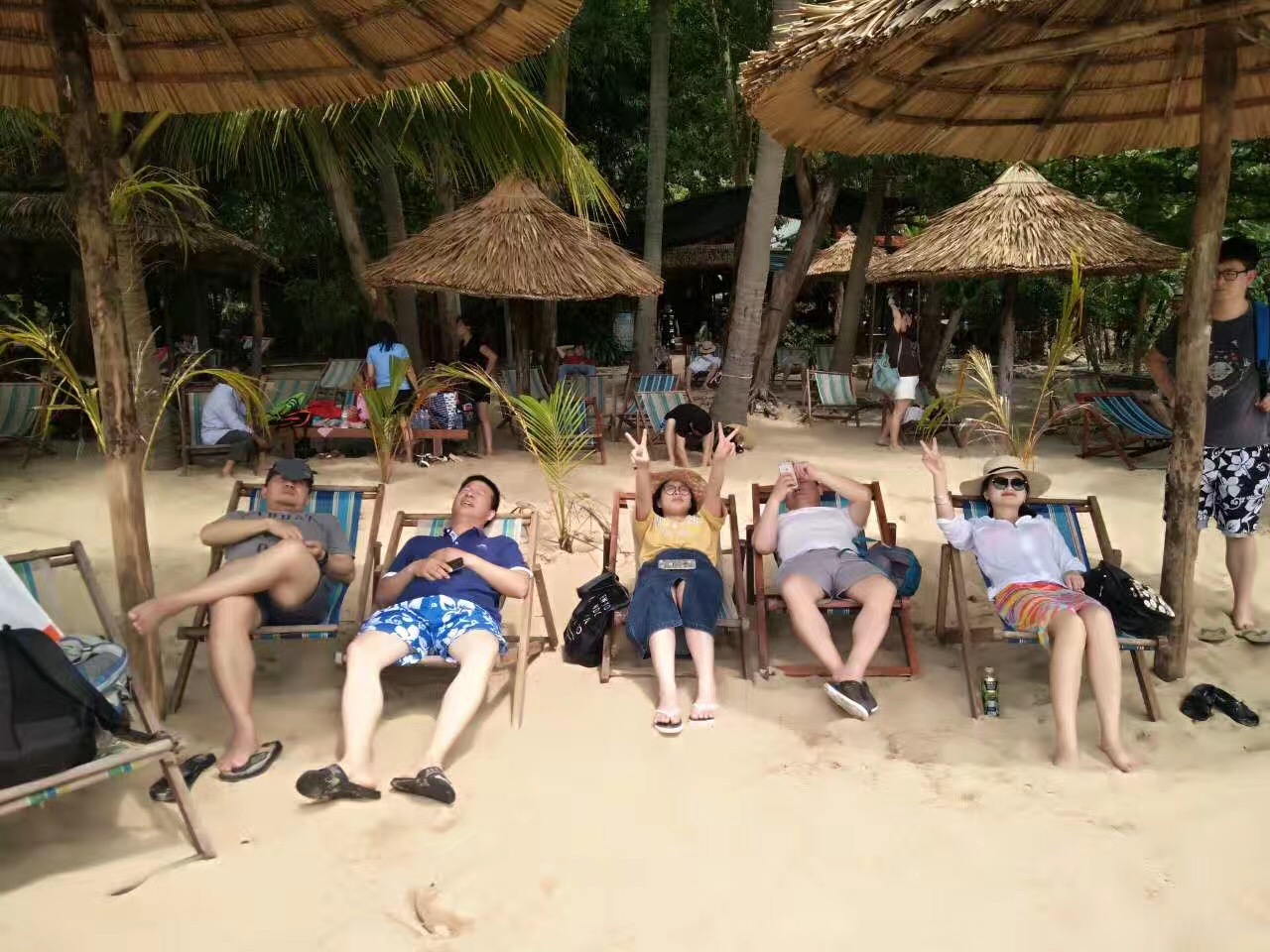 饭后,大家在沙滩上休息,晒着太阳、吹着海风、享受美好的午后。