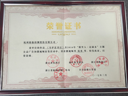本次大赛为深入践行“新发展理念”,贯彻落实习总书记“节水优先、空间均衡、系统治理、两手发力”的新时期治水方针,呼吁更多的人关注水、爱护水、节约水、保护水。大赛共征集到作品233部,其中公益广告103部,微视频130部。经专家评审,共评选出23部获奖作品和3家优秀组织单位,很荣幸,格临股份获得了此次大赛的优秀奖。